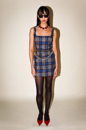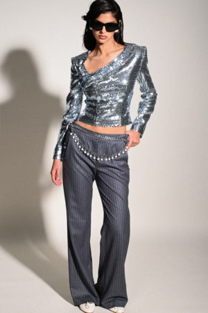 BI-COLOR LONG DRESS WITH SPIRAL JEWEL – BLACK